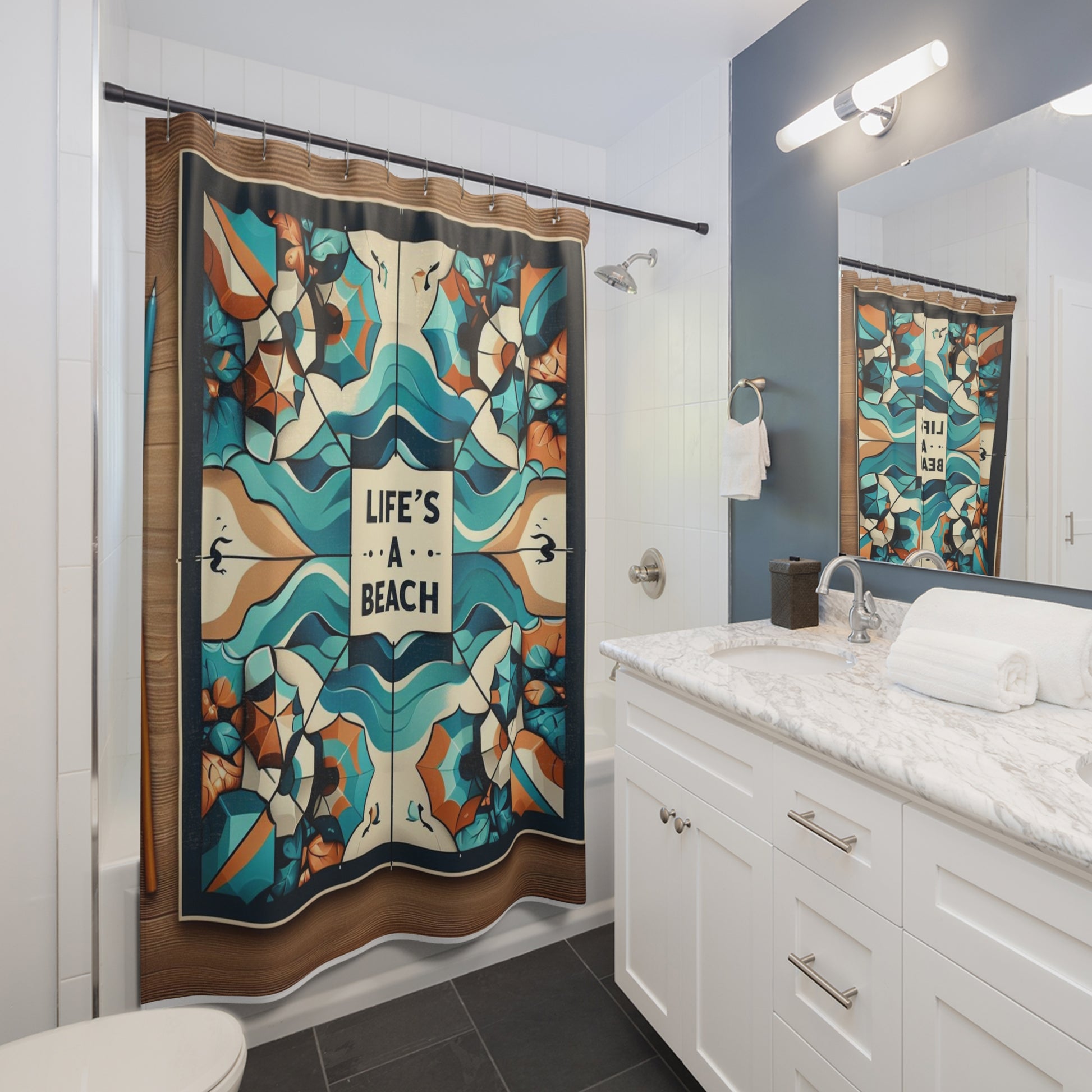 When "Life's A Beach" the fun in the sun is your superpower and this shower curtain is here to add an original touch to any bathroom with your designs. Made with highly durable polyester, this curtain stays like new for a long time to come and is a perfect printing area for your art.