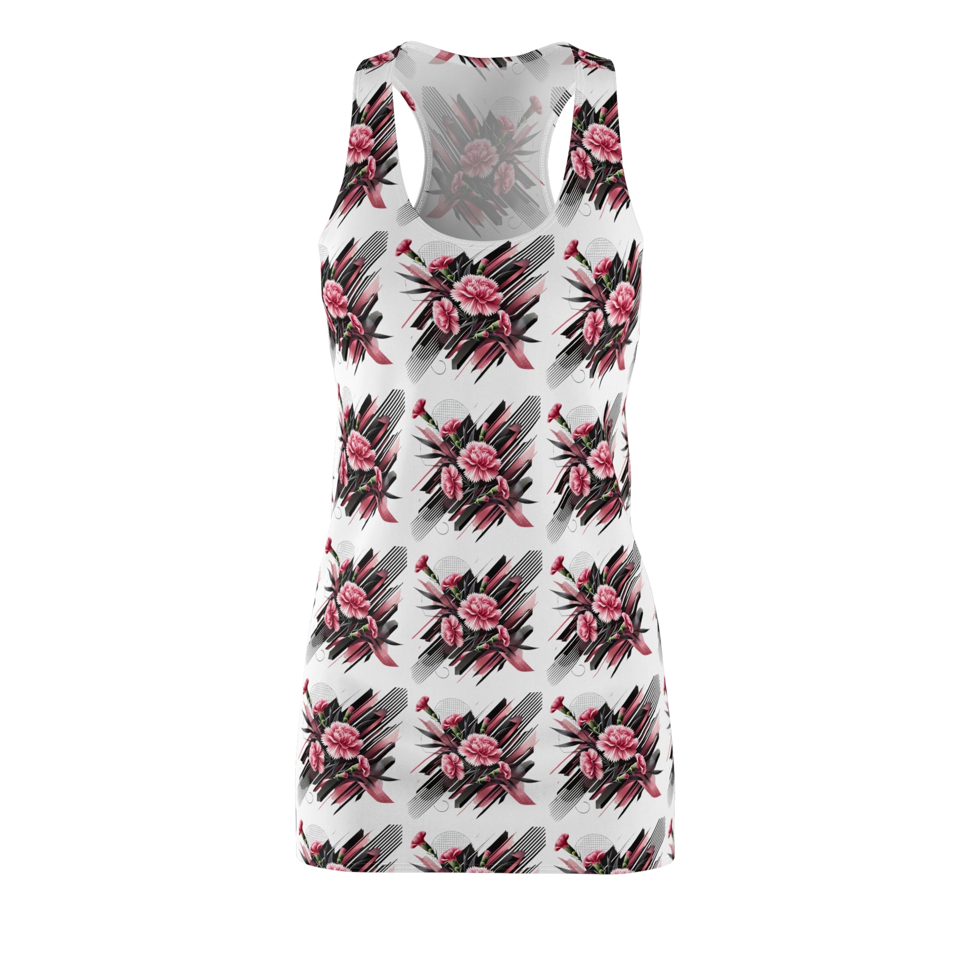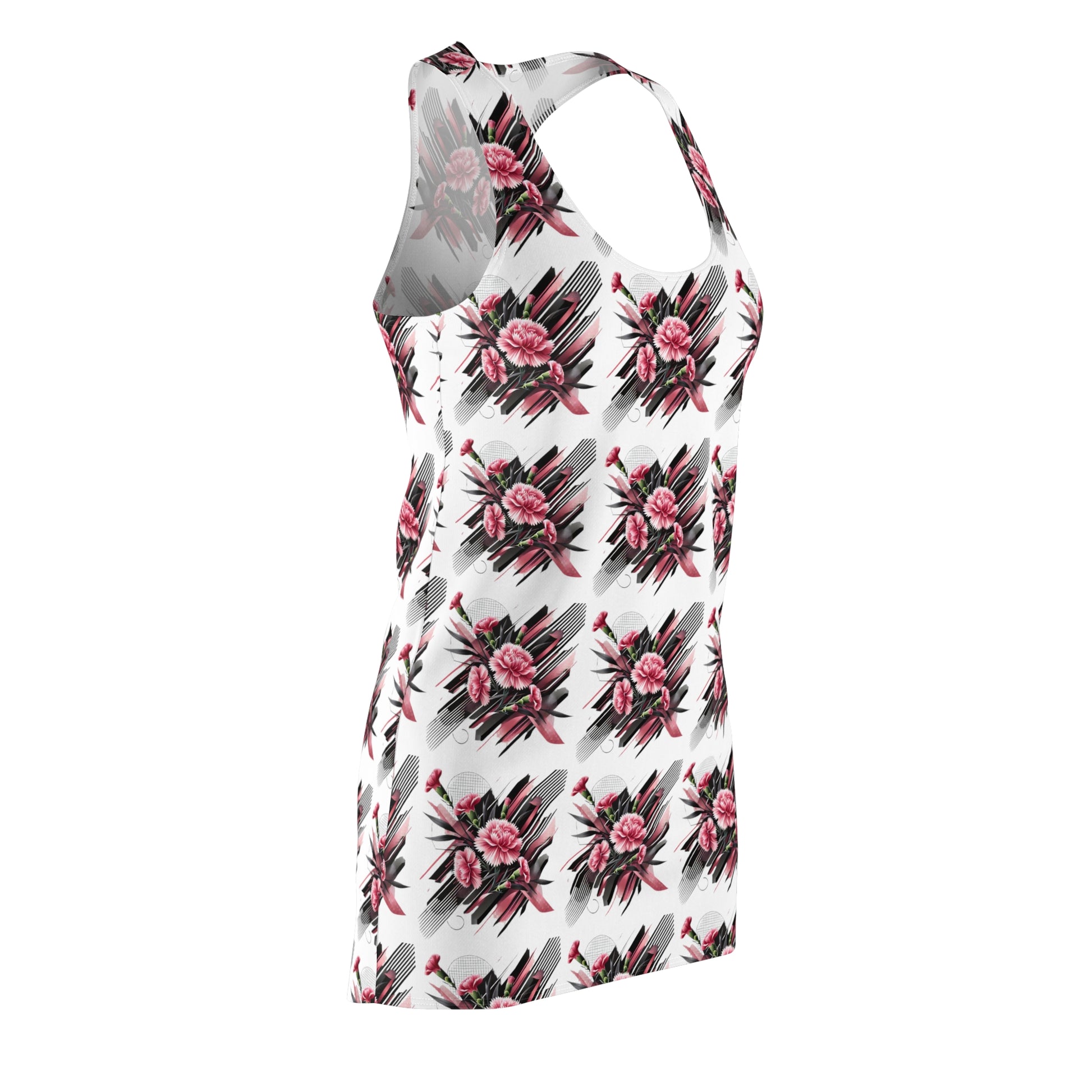 Pink Carnations On White Racerback Dress
